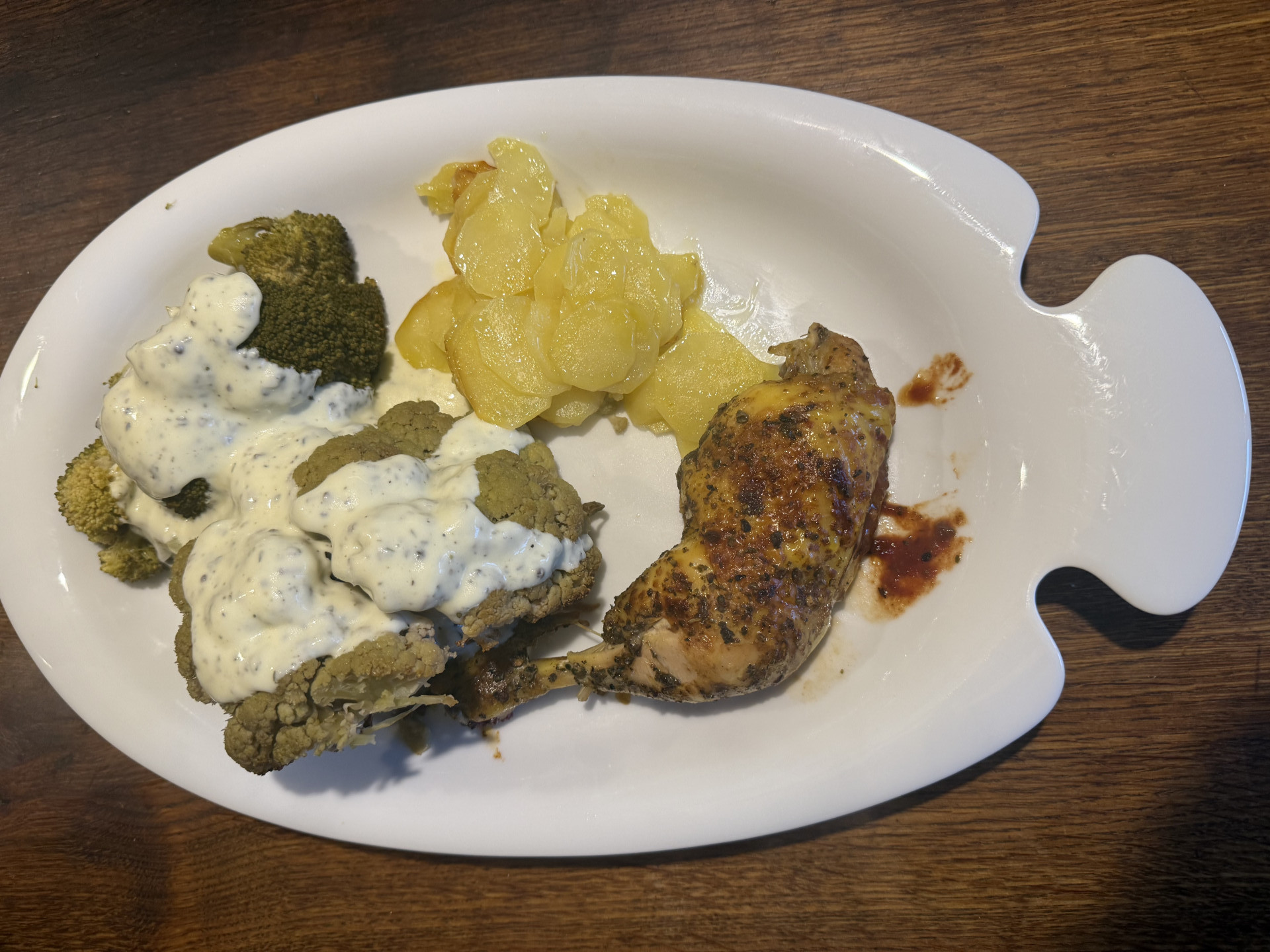 Herzgesunde Ernährung: #489 Kikok-Schenkel mit Pommes Anna, Blumenkohl & Brokkoli