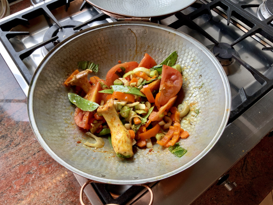 Zubereitung: Etwas Olivenöl und alles Gemüse klein geschnitten im Cataplana garen. Servieren mit Lila Reis.