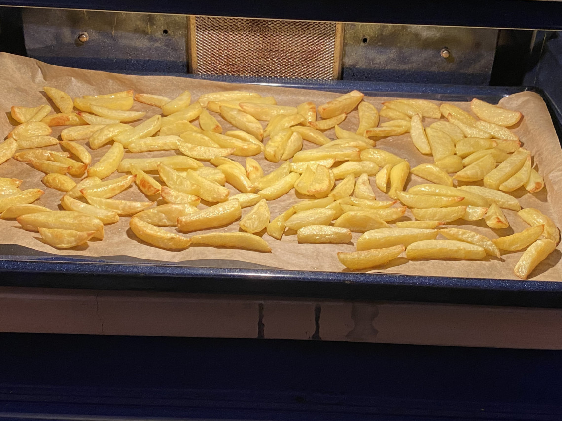 Zubereitung: Lachs in dünne Scheiben schneiden. Kartoffeln schälen, in Frittengröße schneiden und 10 Minuten in Salzwasser kochen, dann in Olivenöl wälzen und auf einem Backblech mit Backpapier im Backofen mit Umluft bei 170°C. goldbraun garen. Für die Majo Olivenöl, Joghurt, Meersalz, Dijonsenf, Kapern und Zitronensaft mit dem Schneebesen verrühren. Servieren mit Salat und Merettich.