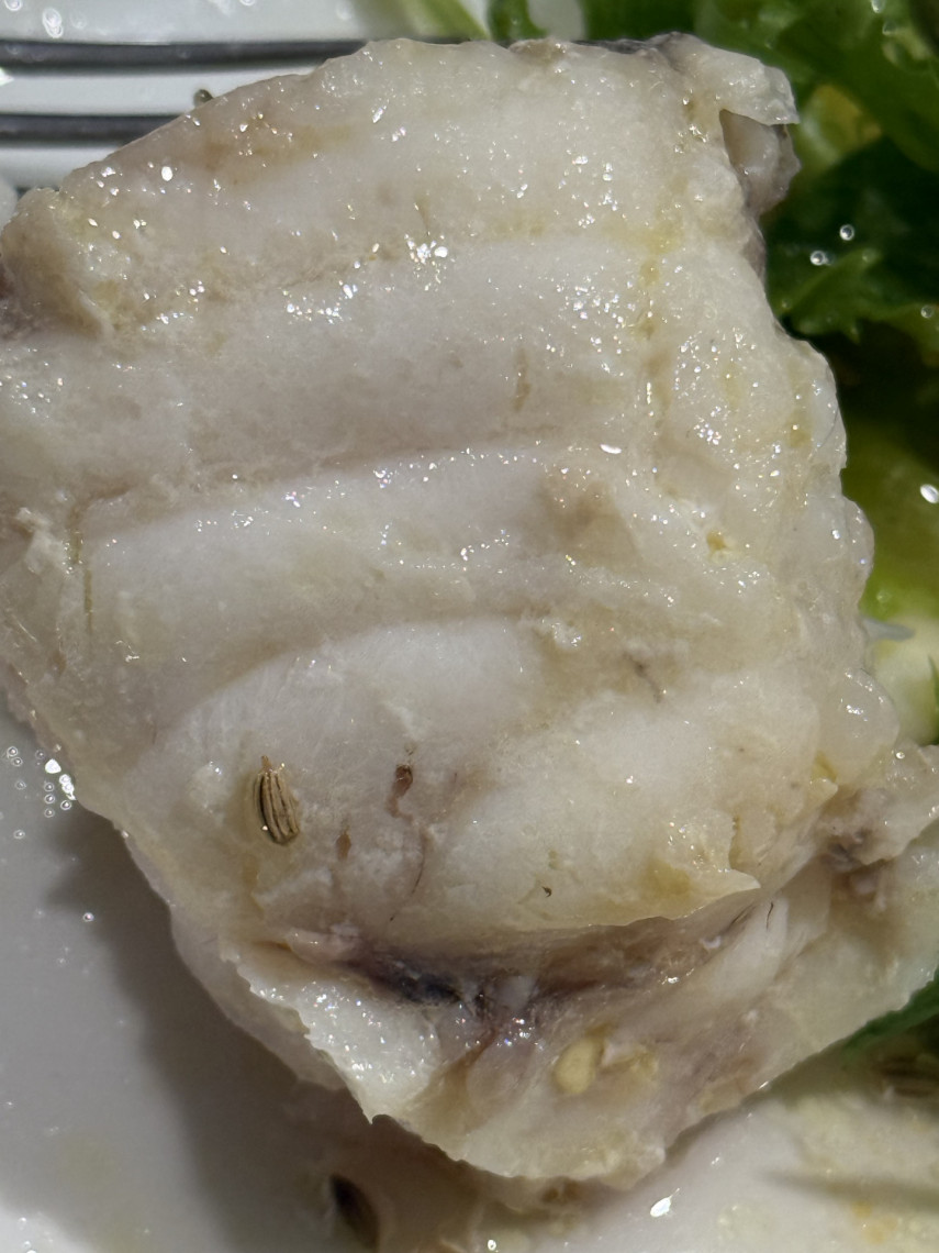 Zubereitung: Seeteufel in Olivenöl mit Knoblauch, Fenchelsaat und Meersalz in passender Pfanne mit Deckel garen. Beim Wenden von beiden Seiten salzen.