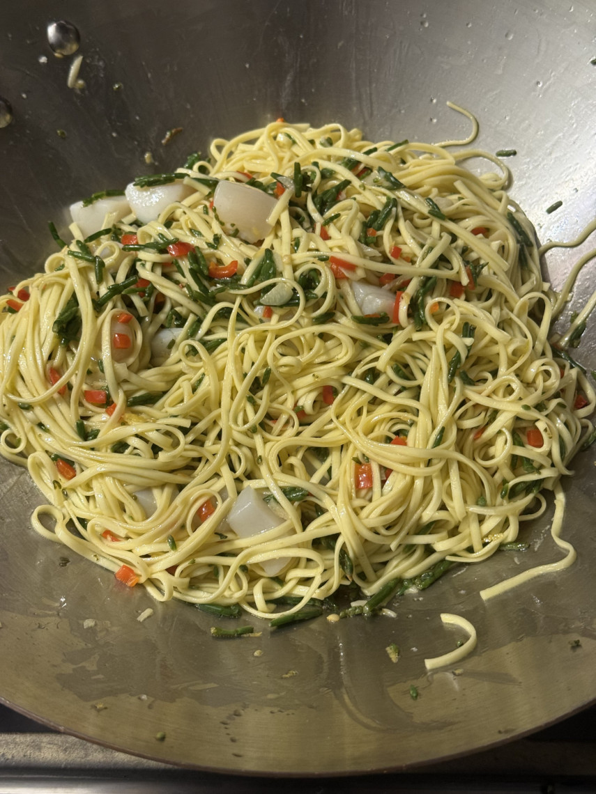 Herzgesunde Ernährung: #545 Spaghetti Aglio e olio mit Jakobsmuscheln und Salicorne