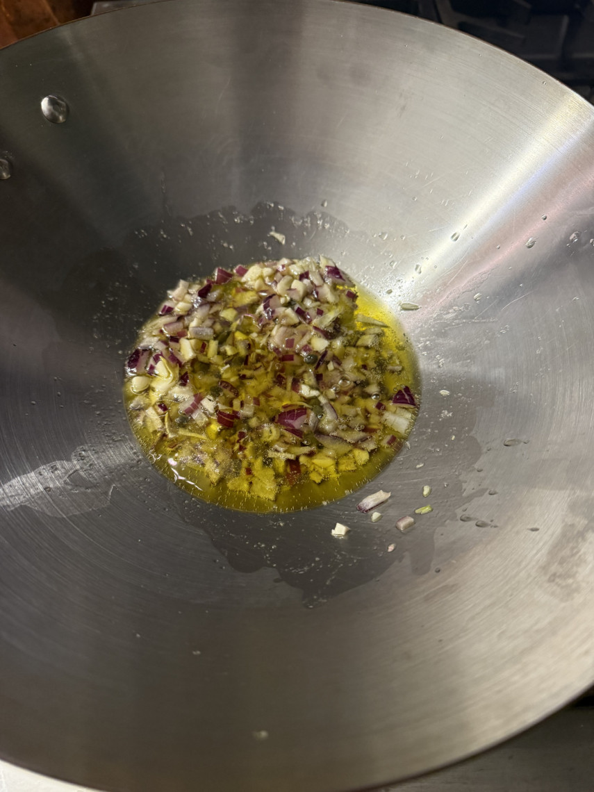 Zubereitung: Zwiebeln, Knoblauch und Kapern in Olivenöl in einem Wok dünsten. Den Spinat abwaschen, blanchieren, abschrecken, auspressen und klein schneiden, dann in den Wok geben; den Räucherlachs gewürfelt hinzugeben und zusammen mit Crème Fraîche kurz angaren. Einen EL Tomatenmark einrühren. Gekochte Nudeln und eine Kelle Nudelwasser hinzugeben und servieren.