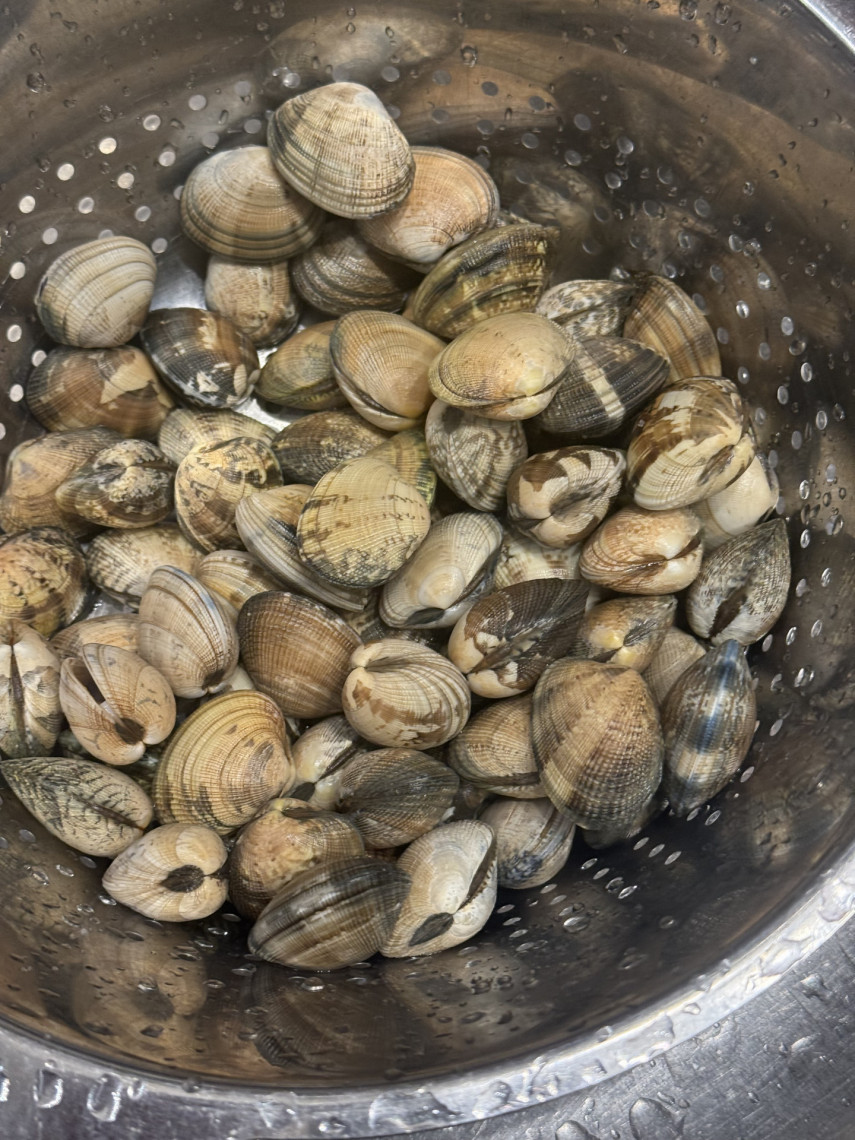 Zubereitung: Muscheln unter fließendem Wasser Waschen, zerbrochene und offene Muscheln aussortieren.