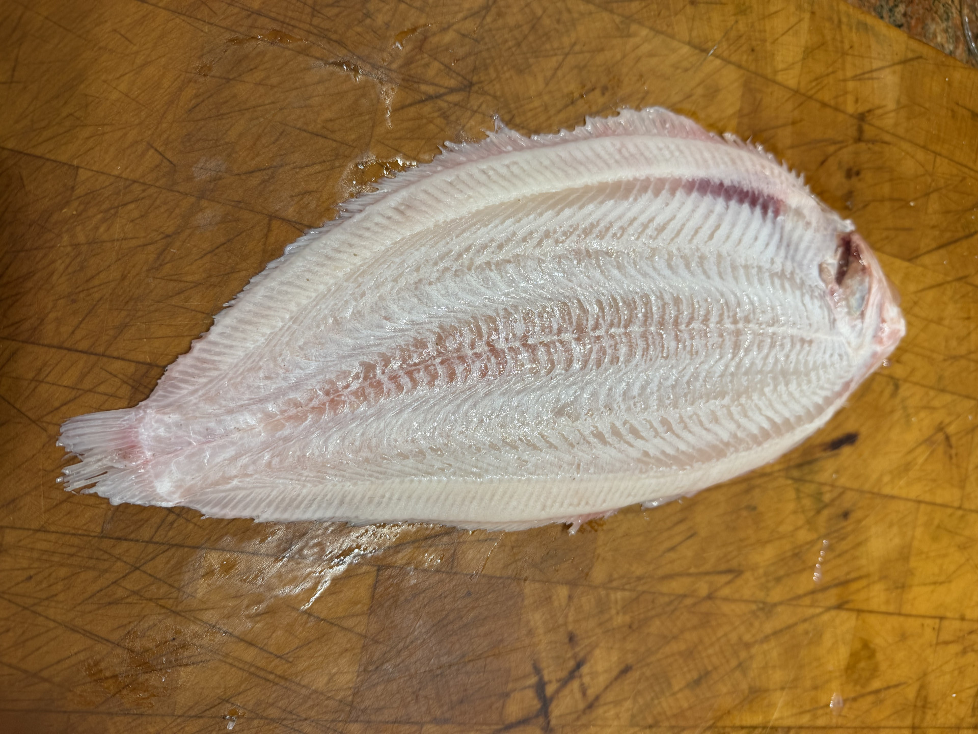 Zubereitung: Seezunge ausnehmen, den äußeren Flossensaum abschneiden, salzen und in eine kleine passende Pfanne mit Olivenöl, Knoblauch, einer roten Peperoni und Fenchelsaat legen und einmal wenden, von beiden Seiten salzen, den Zitronensaft darüber pressen. Mit Deckel 20 Minuten bei kleinster Flamme garen, einmal wenden.