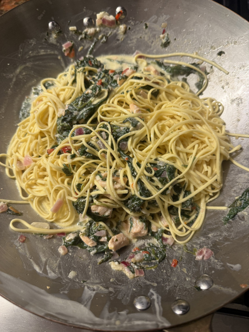 Herzgesunde Ernährung: #561 Spaghetti mit Lachs und jungem Blattspinat