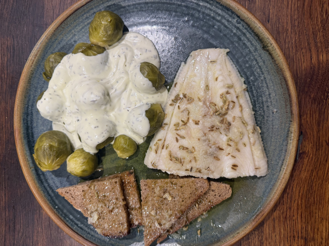 Herzgesunde Ernährung: #575 Geknofelte Seezunge mit Rosenkohl und Roggentoast