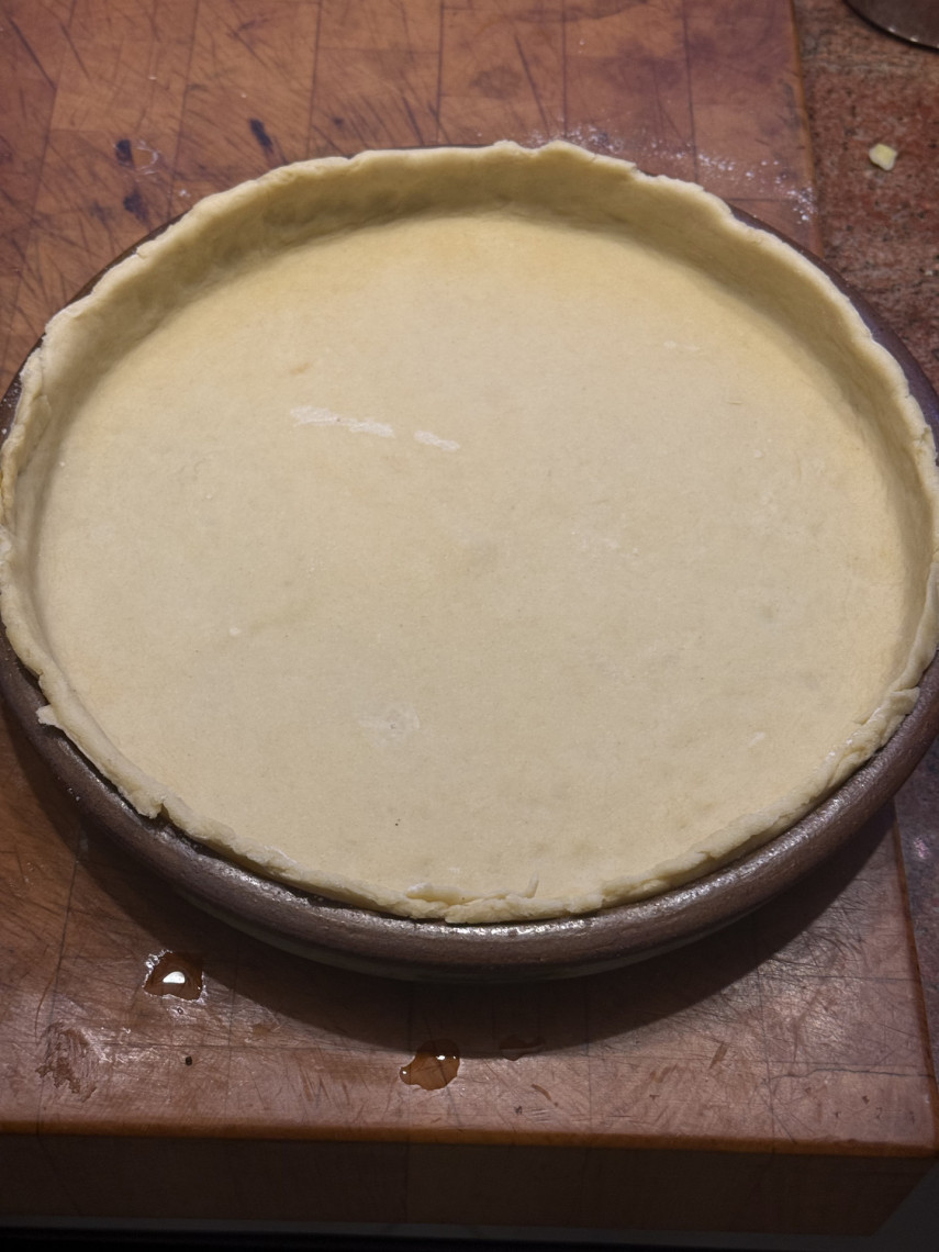 Teig: 300g Mehl (28er Form), 1/2 Würfel frische Hefe, 125 ml lauwarme Milch, etwas Salz, eine Prise Zucker, 35-40 g Olivenöl,. Aus den Zutaten einen Teig kneten, diesen dann etwa 1/2 bis 1 Stunde gehen lassen, dann ausrollen und in eine Quicheform geben, nochmals gehen lassen, während man in der Zwischenzeit das Gemüse zubereitet.
