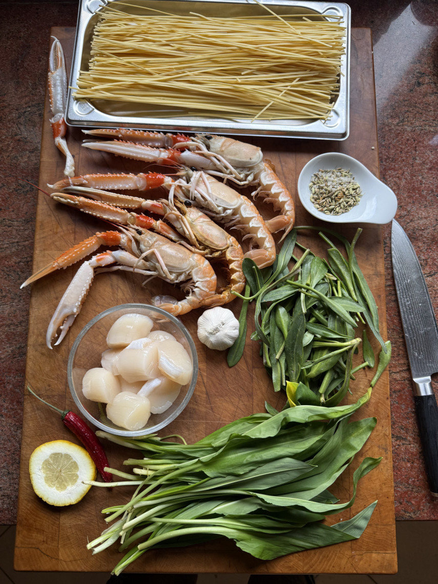 Herzgesunde Ernährung: #658 Spaghetti mit Scampi, Jakobsmuscheln, Baerlauch und Lamsooren
