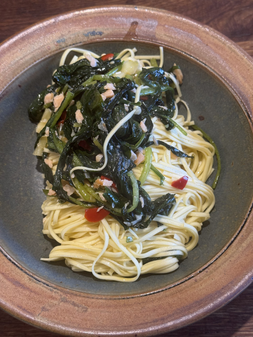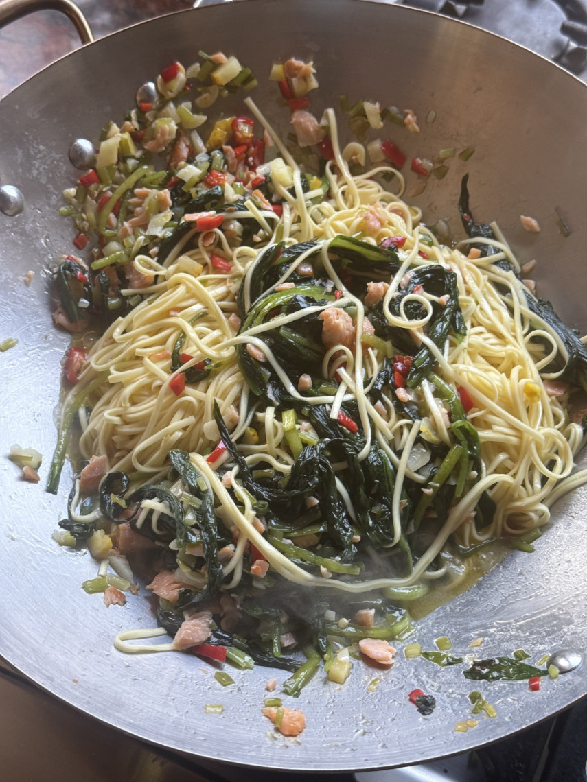 Herzgesunde Ernährung: #668 Spaghetti all’aglio mit Räucherlachs und Baerlauch