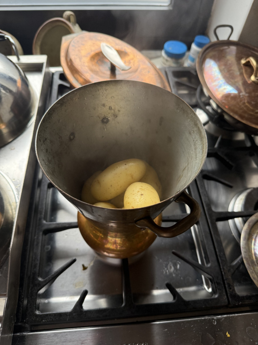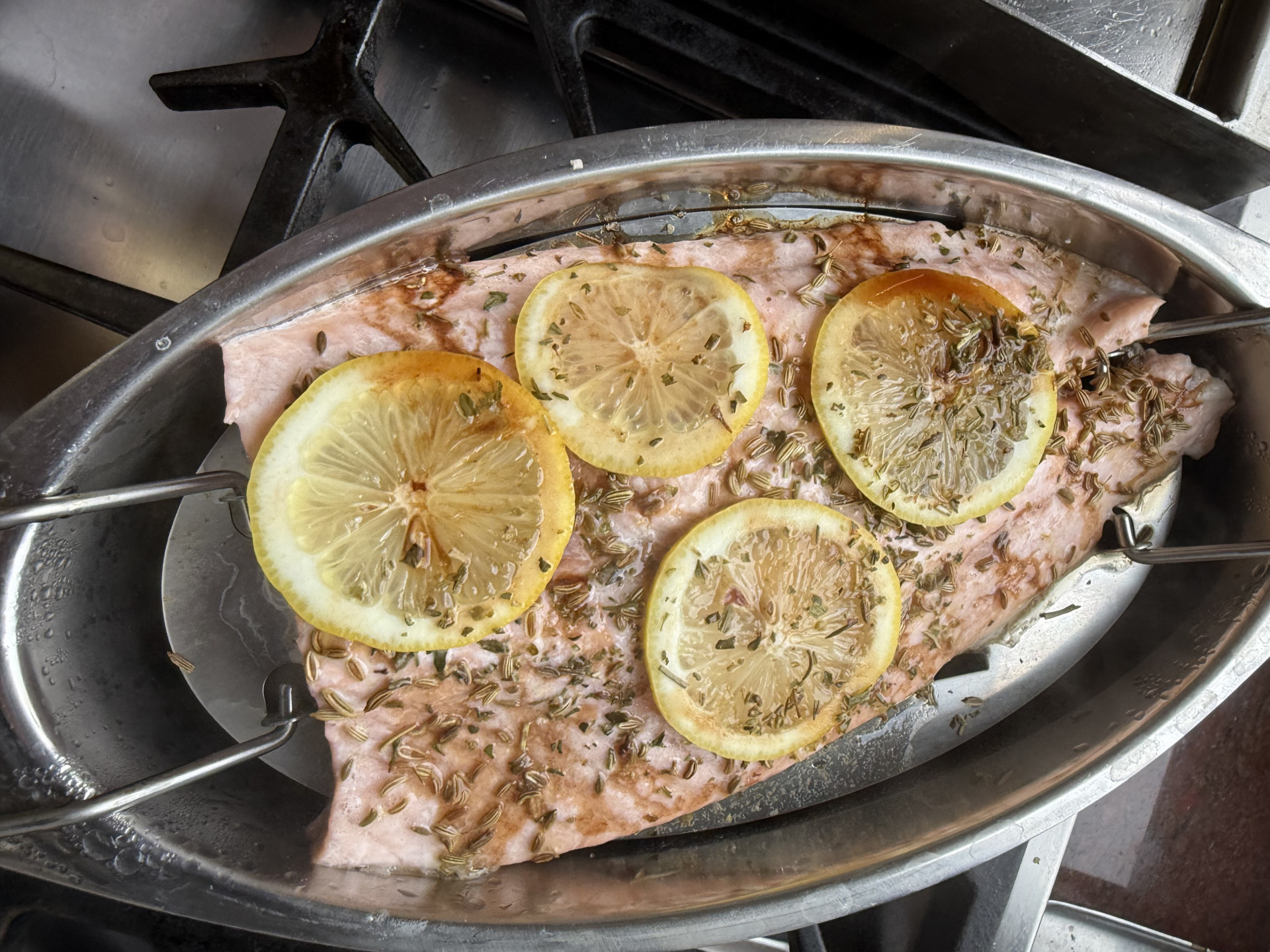 Zubereitung: Drillinge im Kartoffeldämpfer 50 Minuten garen. Brokkoli auf dem Teppanyaki mit wenig Oliveöl unter der Dampfglocke 45 Minuten garen. Lachsfilet im Fischdämpfer mit Meersalz, Fenchelsaat, etwas Käuter der Provence und Zitronenscheiben 15 Minuten ohne zu wenden garen.