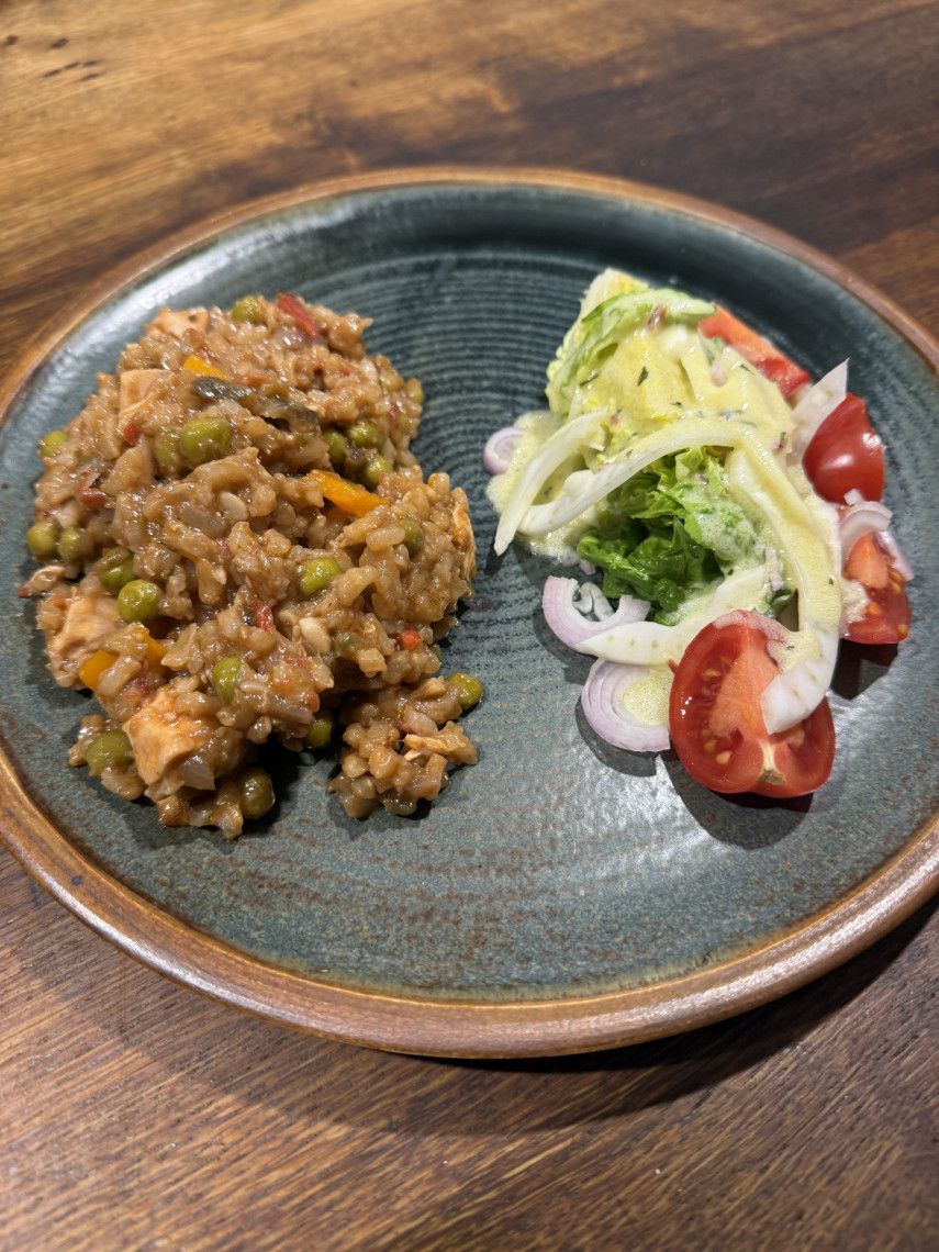Herzgesundes Sylvesteressen: #584 Arborio-Reis Pfanne mit Lachs in süß-saurer Tomaten-Auberginen-Sauce